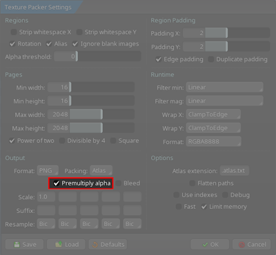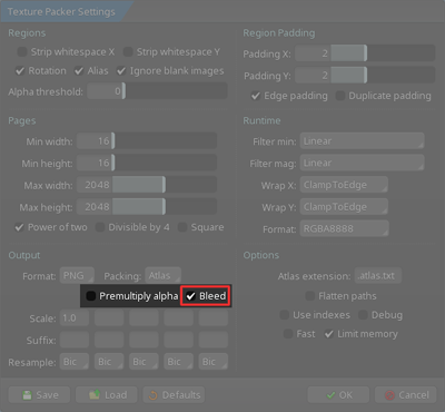 checkbox. This opens the Texture Packer Settings window. -
